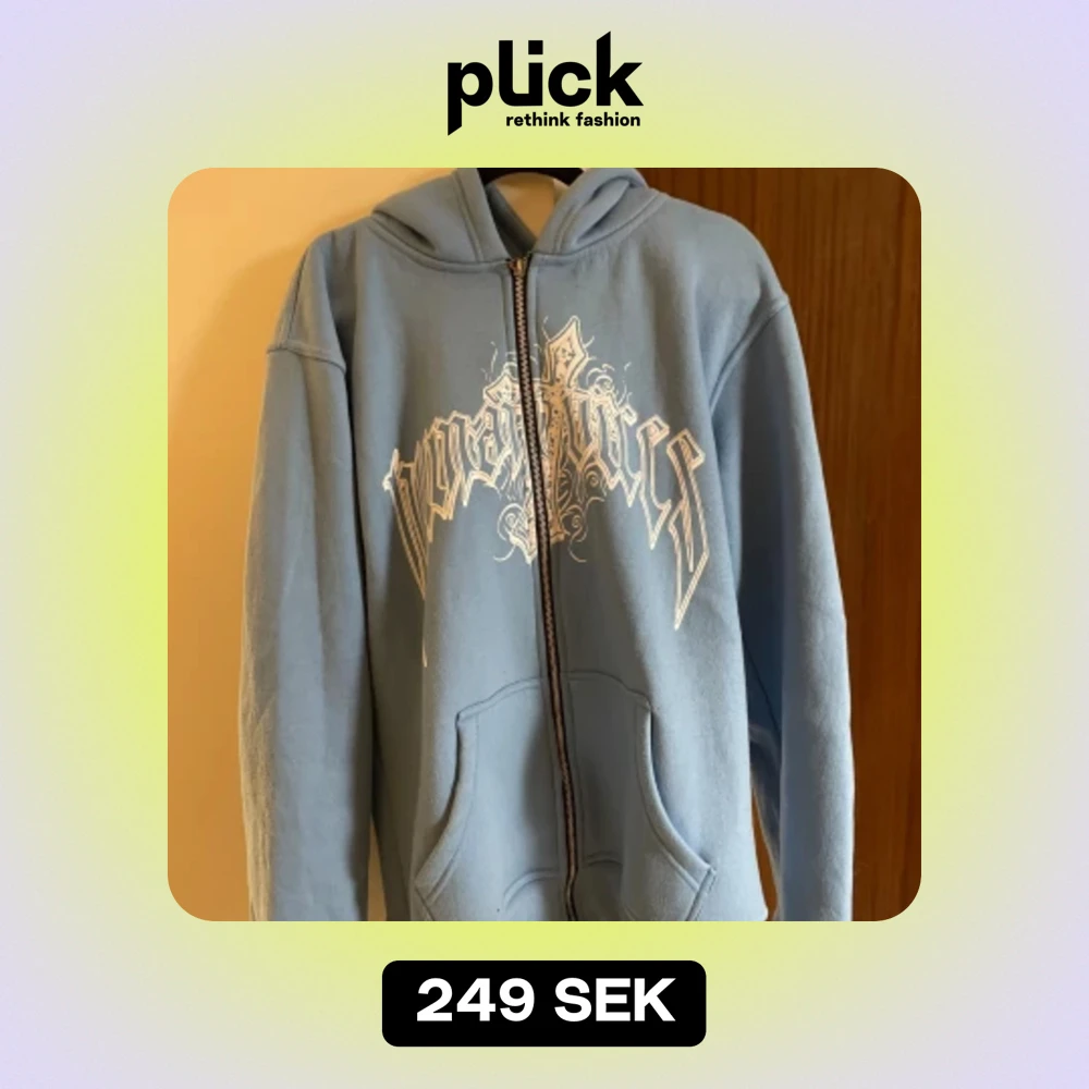 En det blå hoodie från human vices. Köptes 2022, knappt använd Säljs för jag inte har den här stilen längre