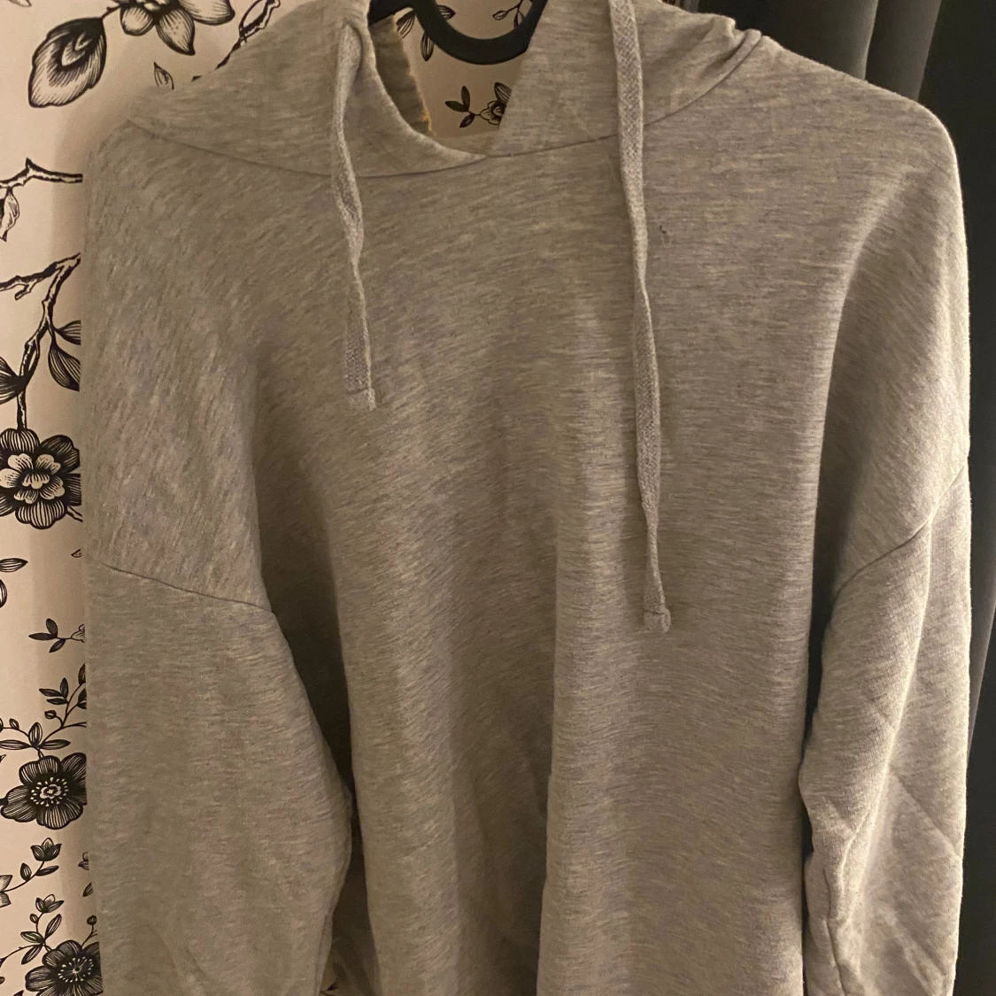 Säljer en grå hoodie som är supermjuk och bekväm. Perfekt för kyliga dagar eller mysiga hemmakvällar. Den har en klassisk design med en stor ficka fram och dragsnören vid huvan. Passar både till vardags och avslappnade aktiviteter.