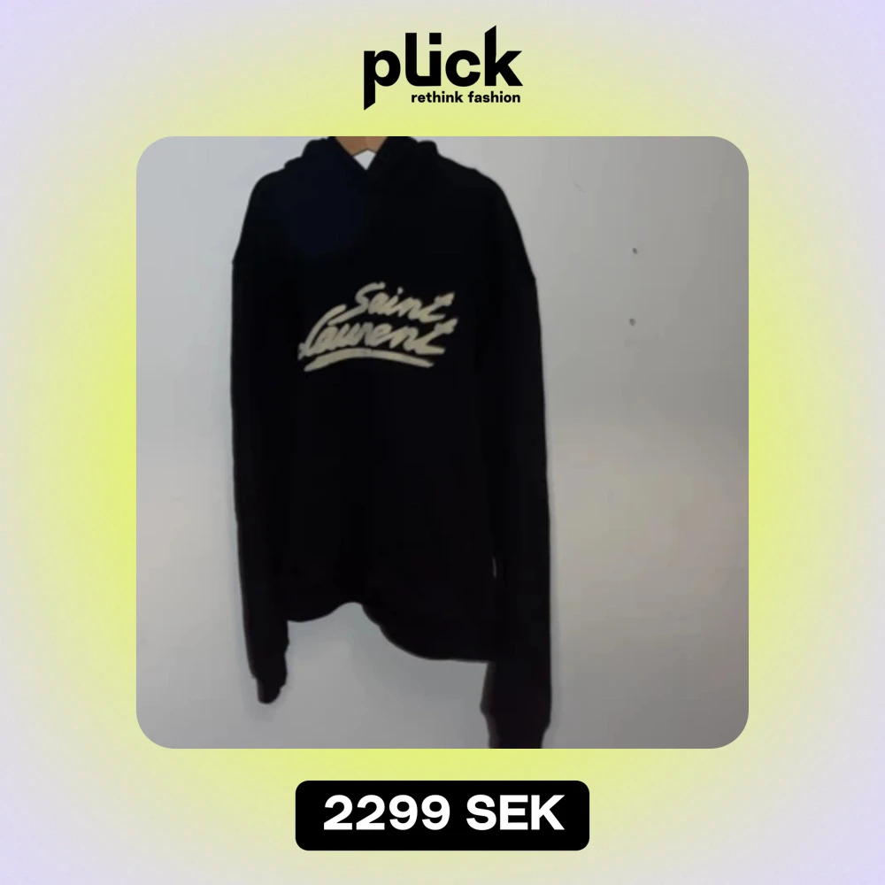 Säljer denna sjukt snygga Saint Laurent hoodie till bra pris✨skick 8/10 då snörena tyvärr är borttappade men det går enkelt att fixa hos en skräddare🧶 Storleken är S men passar även XS📏 Hör av er vid minsta fråga⭐️