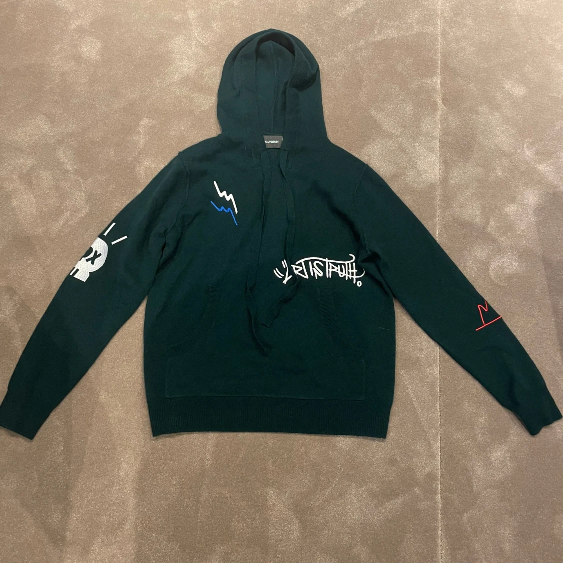 Hej! Hjälper nu min tjej att sälja denna Zadig hoodien i i toppskick storlek S men skulle säga att den är XS på grabbar. Materialet är kasmir och hoodien är unisex vid frågor oxh funderingar är de bara att höra av sig👍
