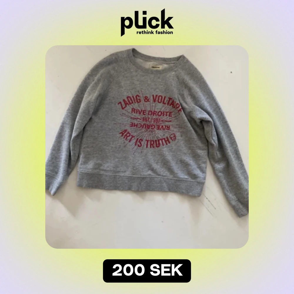 Jätte fin Zadig tröja❤️ säljer då den e förliten för mig. Skulle säga att den motsvarar 146 i barnstorlek ❤️ skriv till mig om ni har mer frågor eller vill ha fler bilder❤️ den har tappat några paljetter