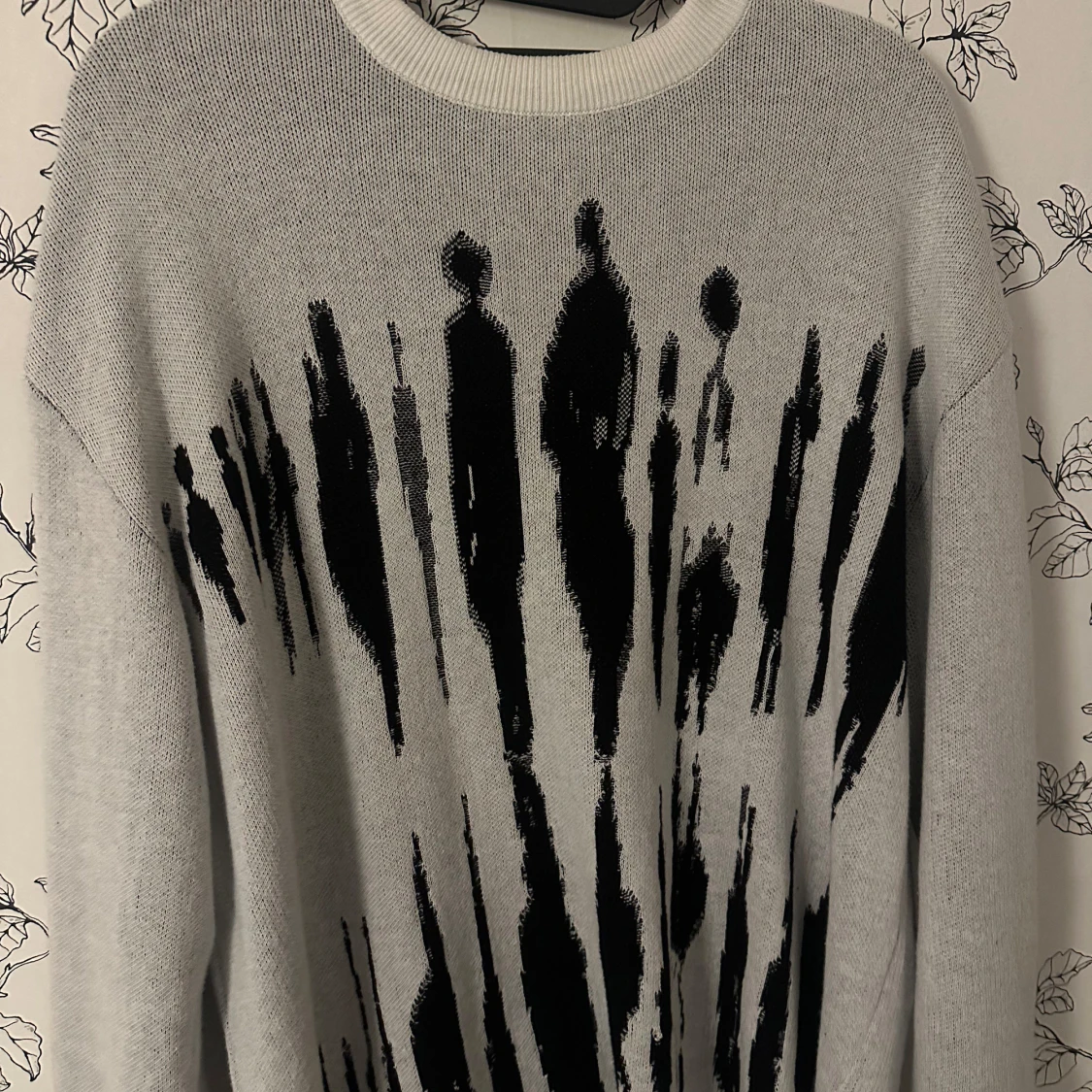 Snygg grå stickad tröja från ZARA med ett unikt svart print av siluetter på framsidan. Enligt mig är det en riktigt fin tröja men den var ganska lång när jag köpte den, skulle säga att den passar någon runt 180-185 längden. Priset kan diskuteras, skriv om ni har funderingar över något