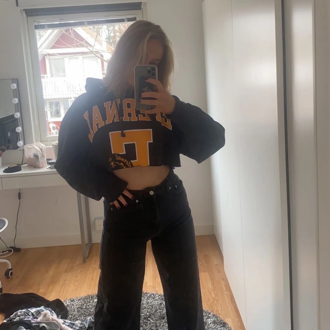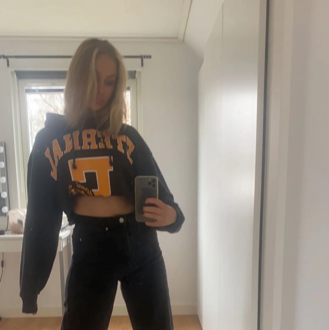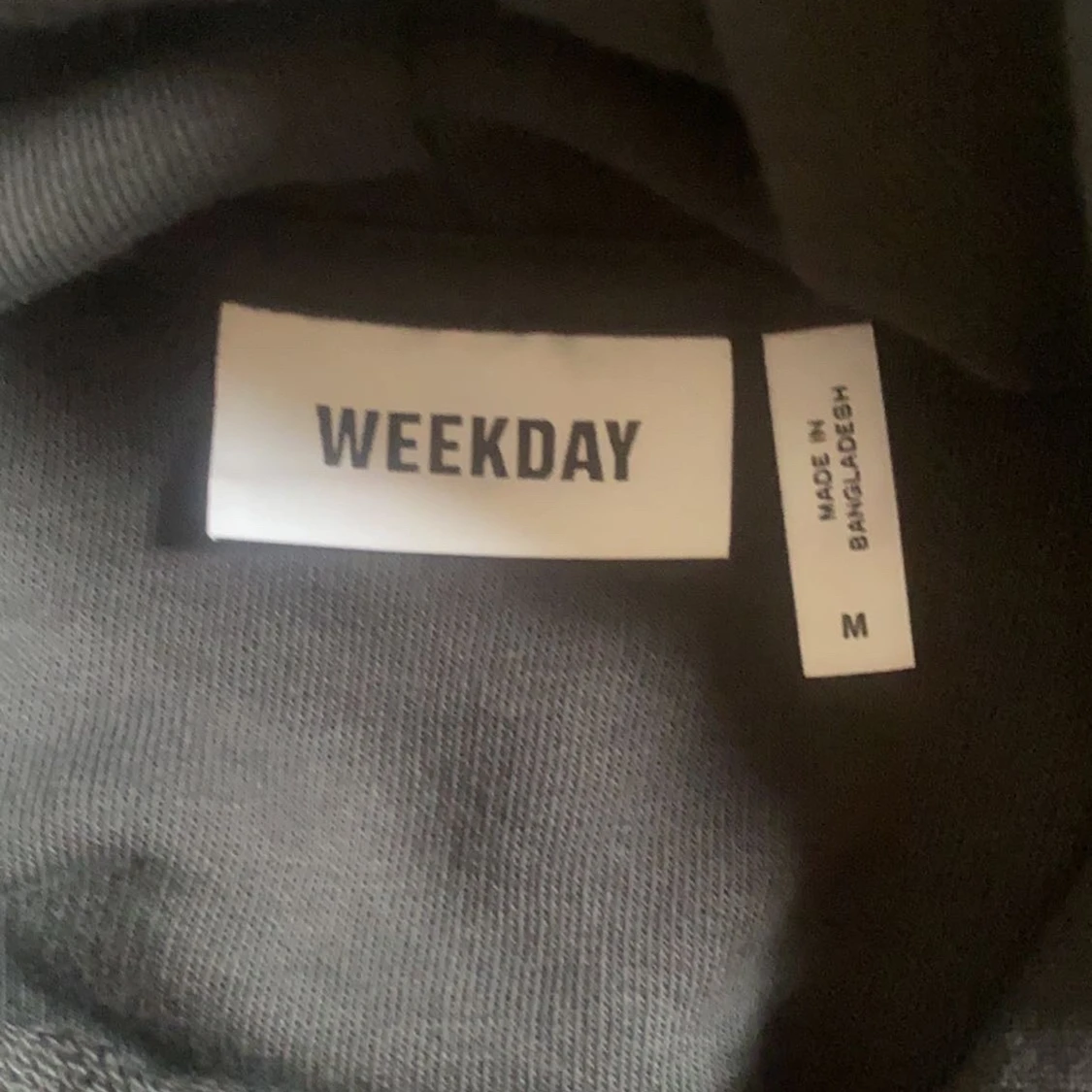 Säljer den här coola hoodien från weekday då den inte kommer till så mycket användning. Använd ca 2-3 ggr bara men den har mest legat i garderoben. Skönt och luftigt material, stor och bra luva och är i stl M. Sitter ganska oversized.