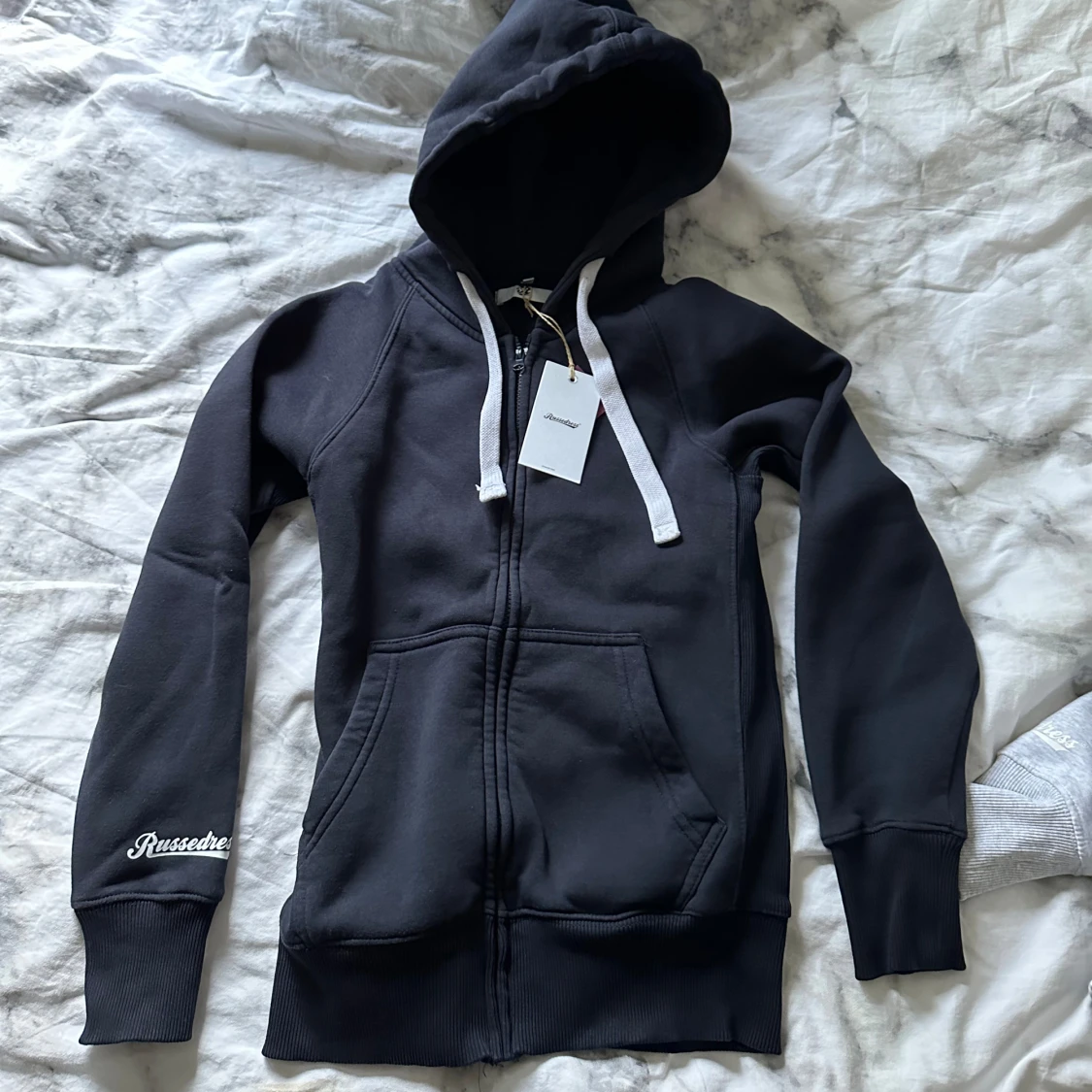 Russemerch hoodie i strl S med lappar kvar, säljer pgr fel strl 💗 skriv om du vill ha fler bilder säljer även en i ljus grå. Nypris 800kr