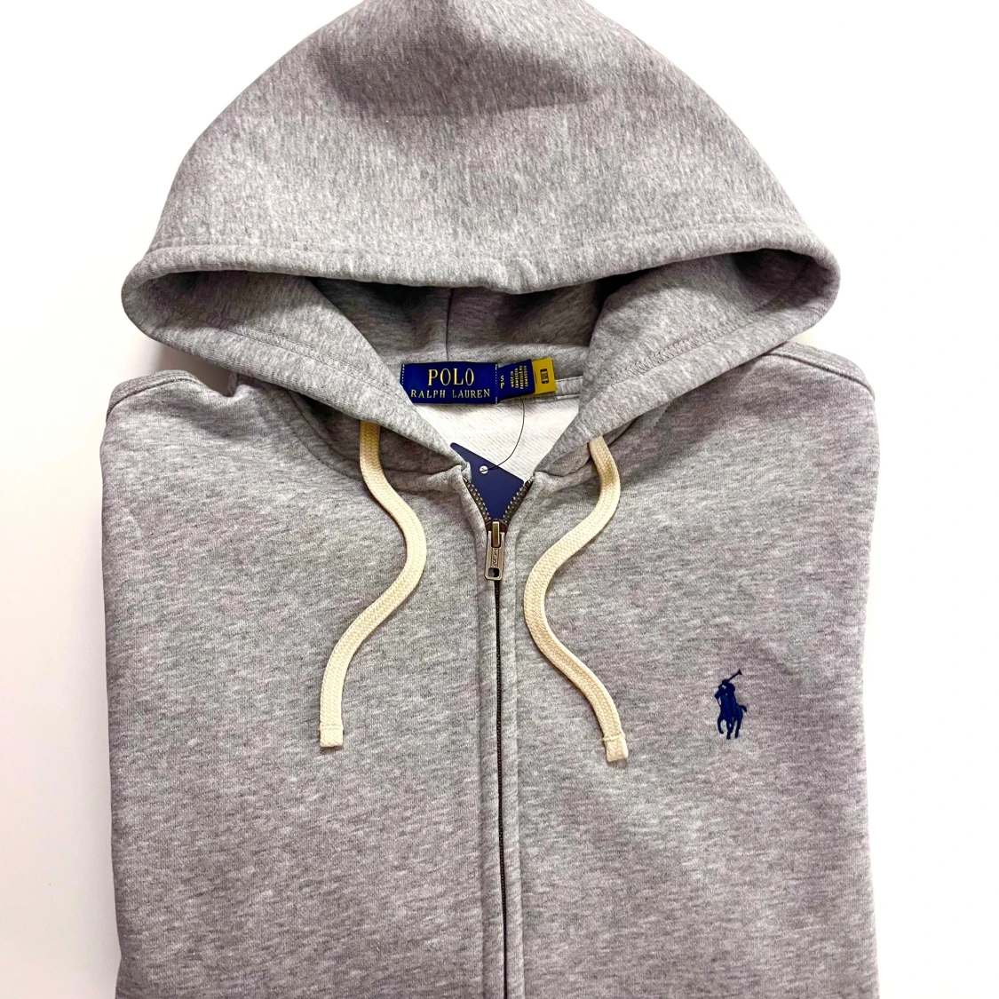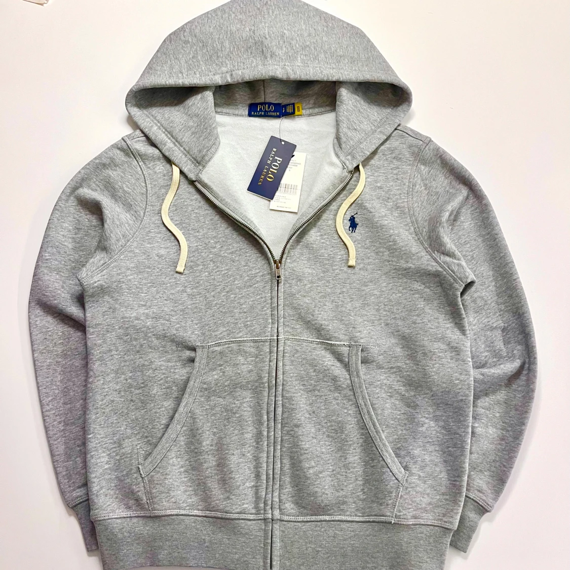 Snygg zip up hoodie från Polo Ralph Lauren. skick är 10/10 och aldrig använd. Tillverkad i mjuk bomullsmix, perfekt för chill dagar eller när du vill ha en clean look. Passar dig mellan 165-175. Ny pris runt 2300.