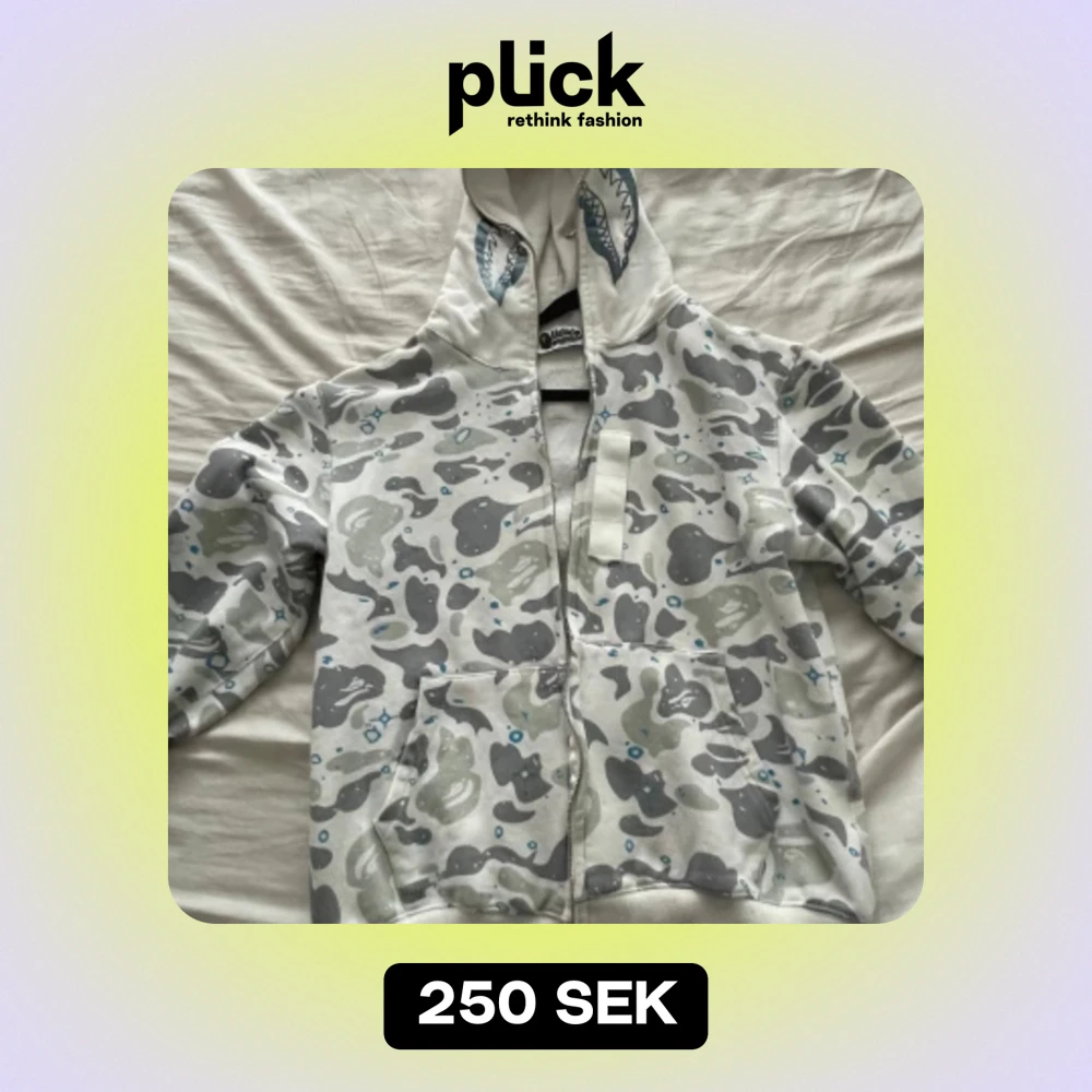 Grå camo zip up hoodie Strl M Dragkedja funkar ej