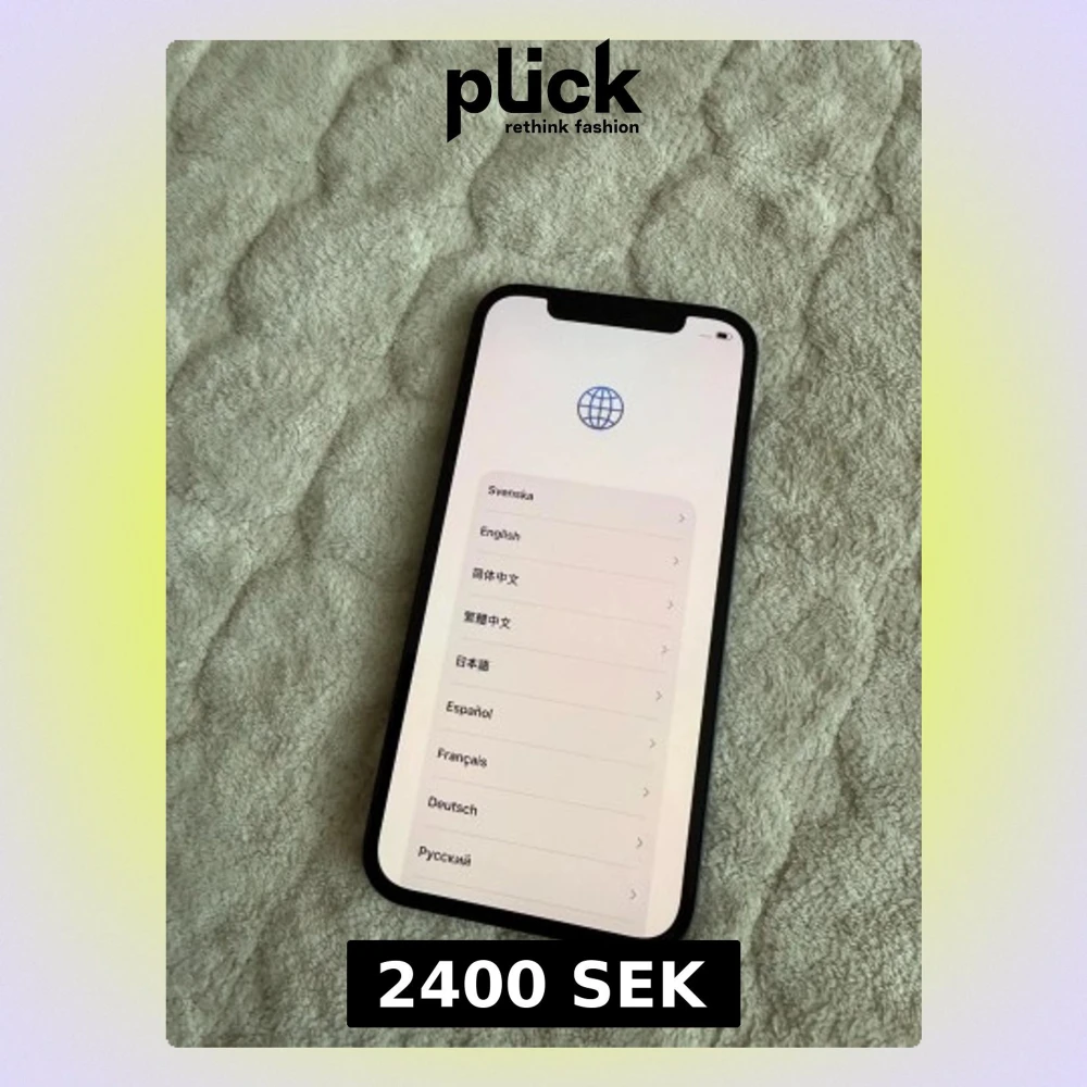 Säljer en svart iPhone med modern, slimmad design och stor skärm. Telefonen har rundade hörn och glas på framsidan. Perfekt för dig som gillar stilren teknik och vill ha en kraftfull smartphone från Apple.
