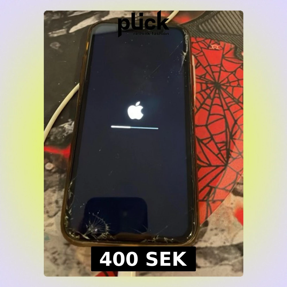 Säljer en iPhone med svart framsida och rundade hörn. Telefonen har en stor skärm och klassisk Apple-design med glas på framsidan. Perfekt för dig som gillar iOS och vill ha en stilren mobil från Apple.