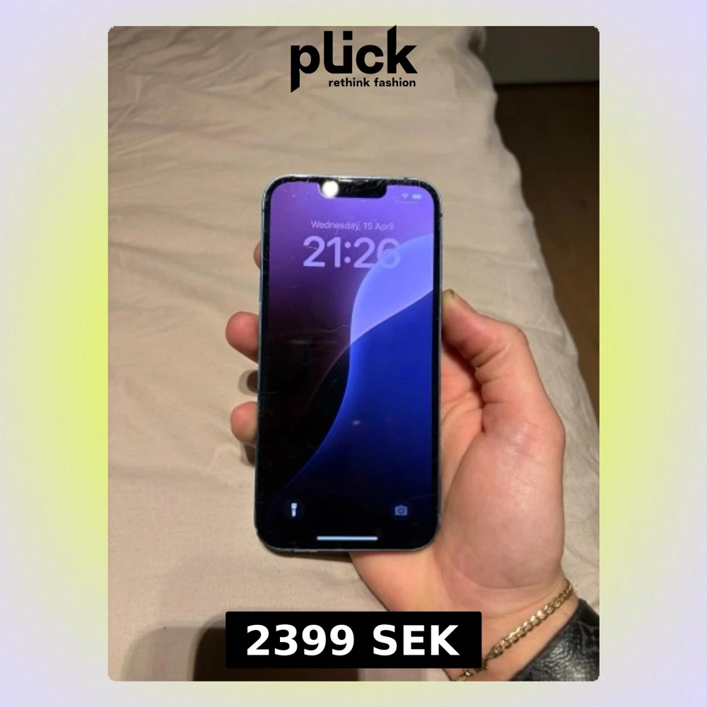 Iphone 13 som fungerar perfekt Små repor på skärmen, inga repor på baksidan och större repor på sidorna av telefonen. Dock inga sprickor alls. Pris kan diskuteras vid snabb affär. Allt funkar som det ska, bara utseende skador.