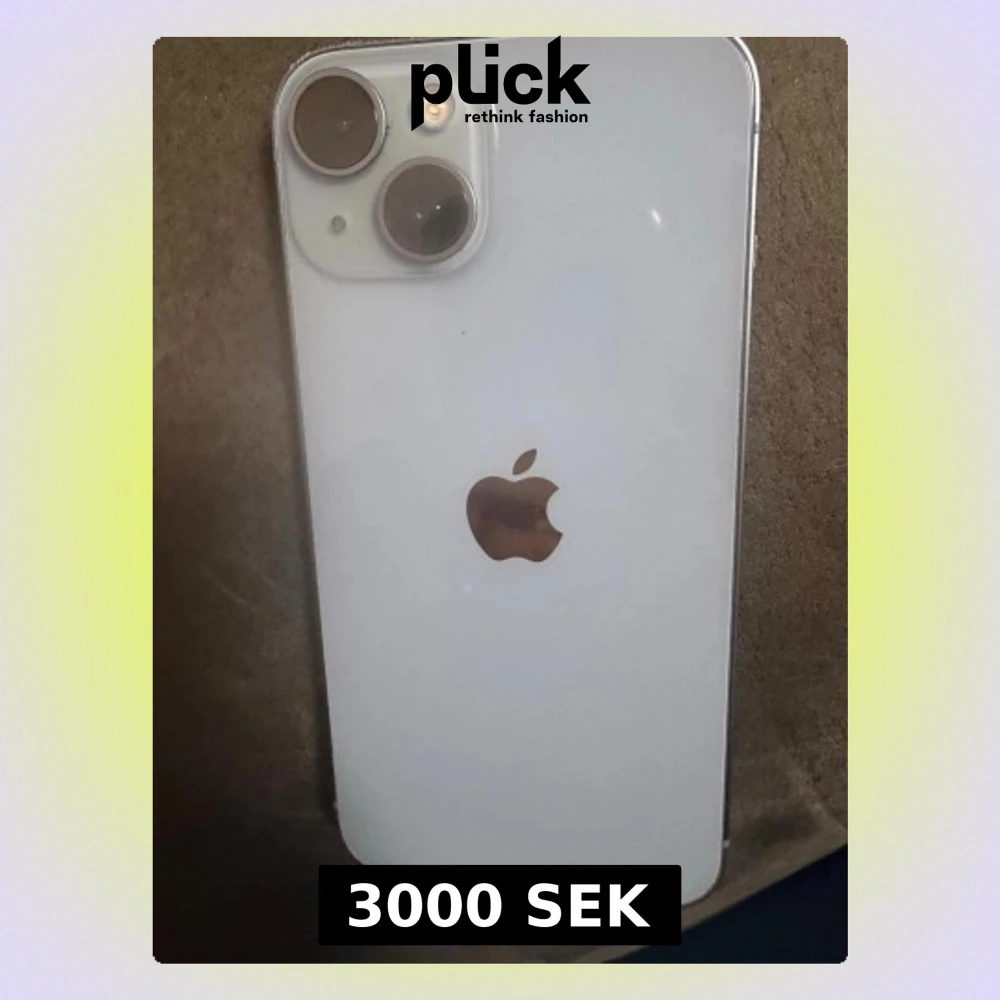 Snygg iPhone 14 med stilren design och två stora kameralinser på baksidan. Telefonen har en glansig baksida i glas och klassisk Apple-logga i mitten. Perfekt för dig som gillar modern teknik och enkel, clean look.