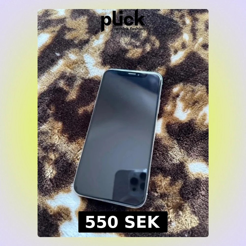 Säljer en iPhone med stilren svart framsida och rundade hörn. Telefonen har en stor skärm och klassisk Apple-design med glas på framsidan och metallram. Perfekt för dig som gillar snygg och modern teknik , batteriet 100% , nyss skräm baksidan har några streck men den är inte sönder