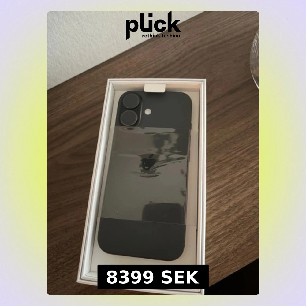 Säljer en svart iPhone 17 från Apple med stilren design och dubbla kameror på baksidan. Telefonen har en slimmad form och är tillverkad i glas och aluminium. Perfekt för dig som vill ha den senaste modellen med modern look och kraftfull prestanda.