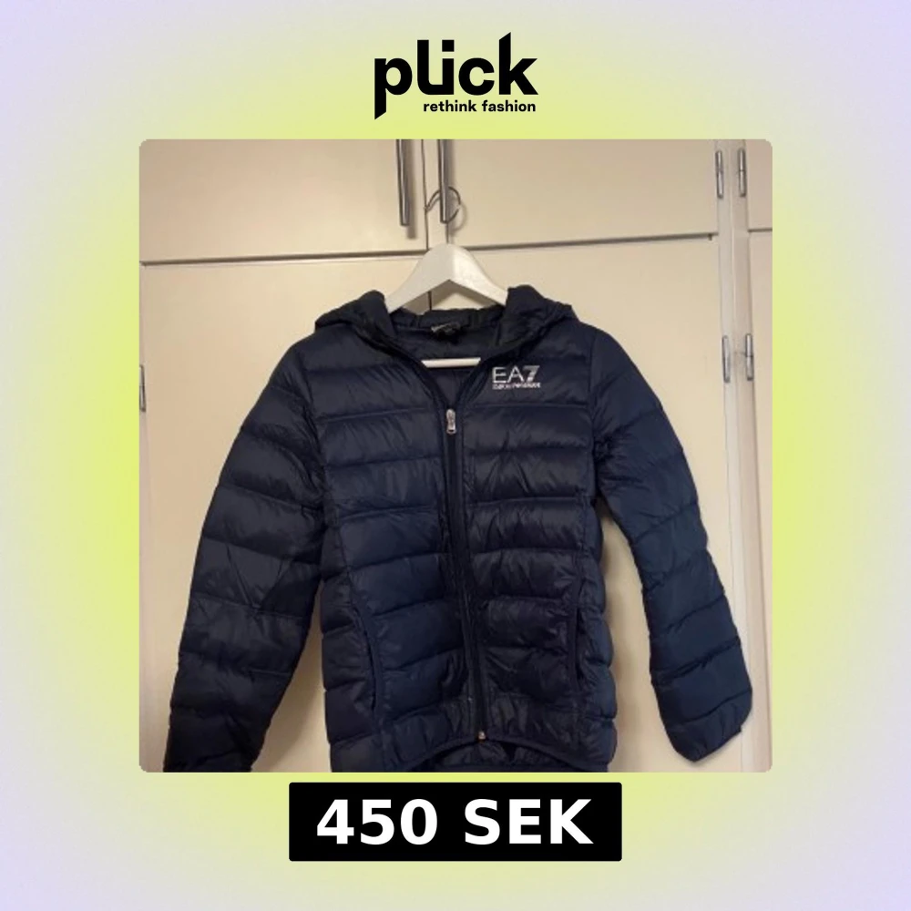 Snygg mörkblå pufferjacka från EA7 Emporio Armani med huva och silverfärgad logga på bröstet. Jackan har dragkedja framtill och är quiltad för lite värme. Perfekt för dig som vill ha en stilren och sportig look.