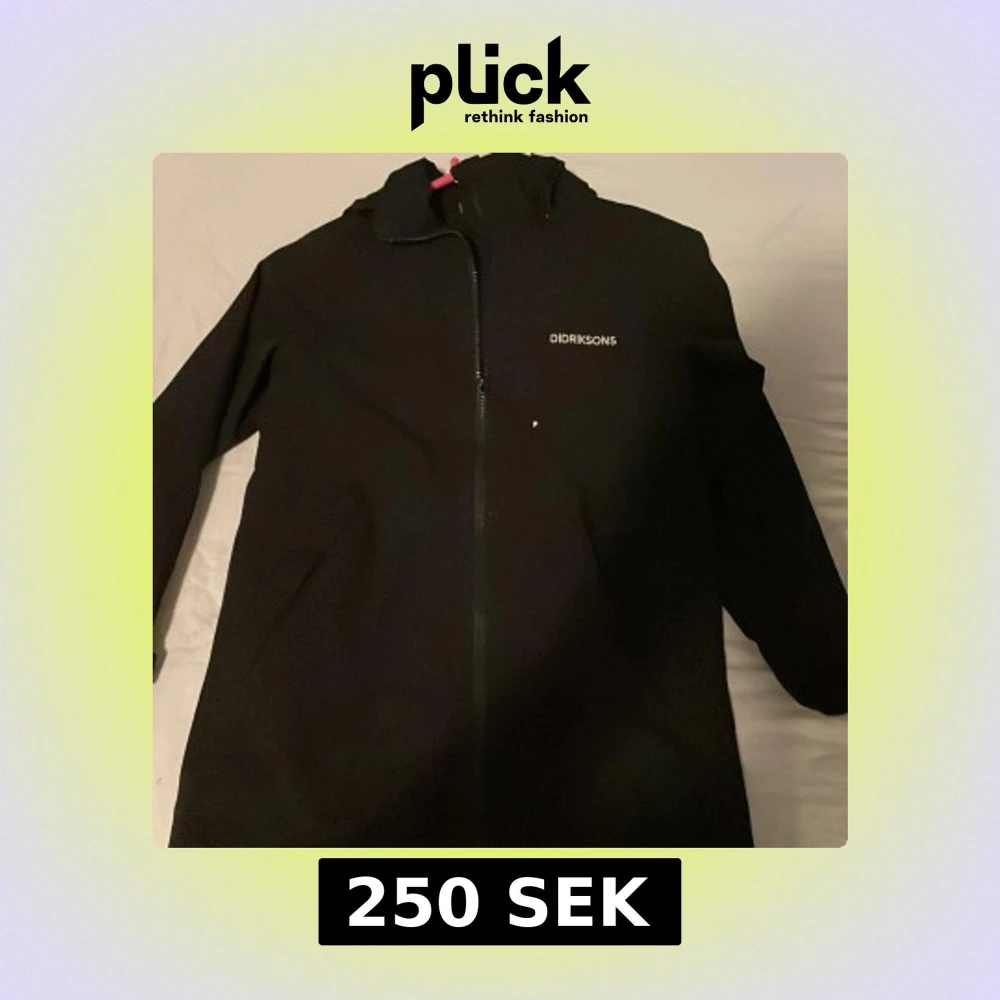 Säljer en svart regnjacka från Didriksons, perfekt för regniga dagar. Jackan är 100% vattentät och har en dragkedja framtill. Den har långa ärmar och en praktisk huva för extra skydd mot väder och vind.