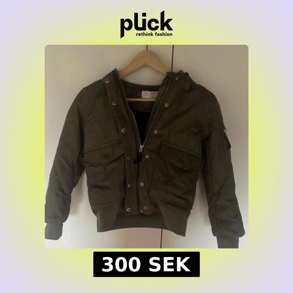 Säljer en olivgrön bomberjacka från L8G Denim. Jackan har en dragkedja framtill, huva och flera fickor. Perfekt för en cool och avslappnad stil. Passar bra för höst och vår.