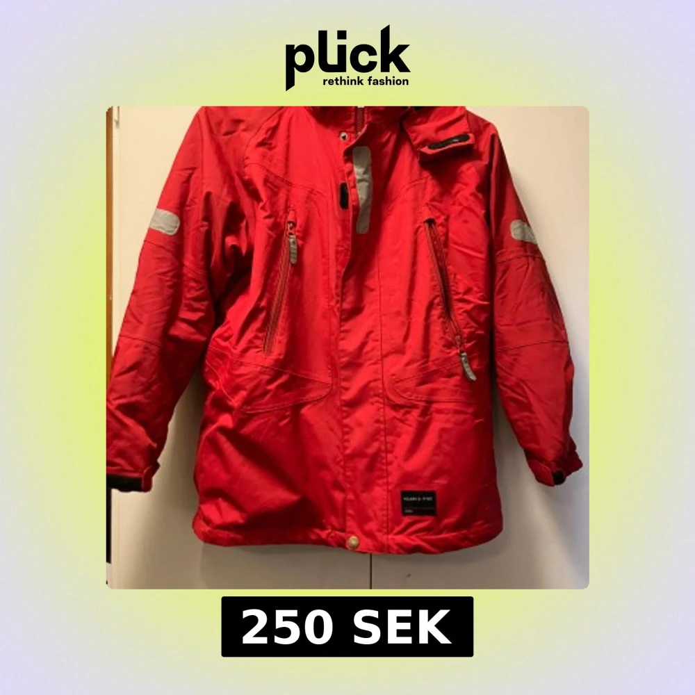Röd vinterjacka från Polarn O. Pyret med svarta detaljer och reflexer på ärmarna. Jackan har dragkedjor framtill, hög krage och praktiska fickor. Insidan är fodrad i svart och har snölås med knappar. Perfekt för kalla dagar och snygg stil. Hel och ren! Jag kan inte hitta något att anmärka på.