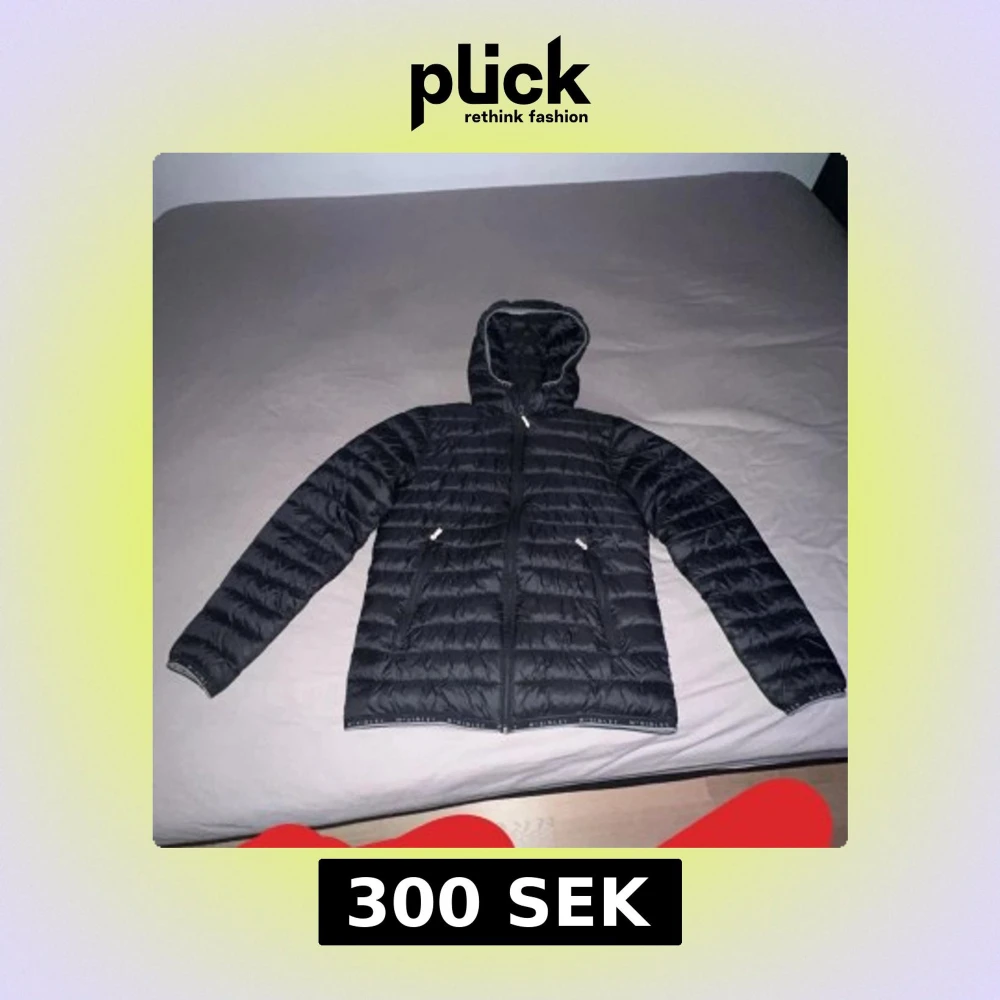 Säljer en svart dunjacka från McKinley med huva och dragkedja. Jackan är quiltad och har en stilren design med elastiska kanter. Perfekt för kyligare dagar.