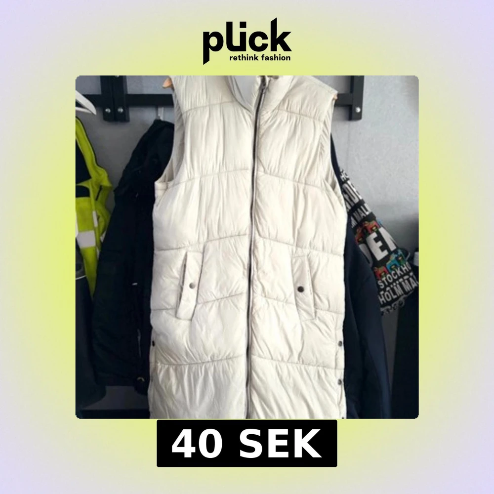 Säljer en stilren vit lång dunväst från Jyothi. Västen har en dragkedja framtill och praktiska fickor med knappar. Perfekt för kyliga dagar när du vill hålla värmen utan att kompromissa med stilen. STÅR STORLEK 34 MEN PASSAR MIG SOM ÄR EN M-L…!