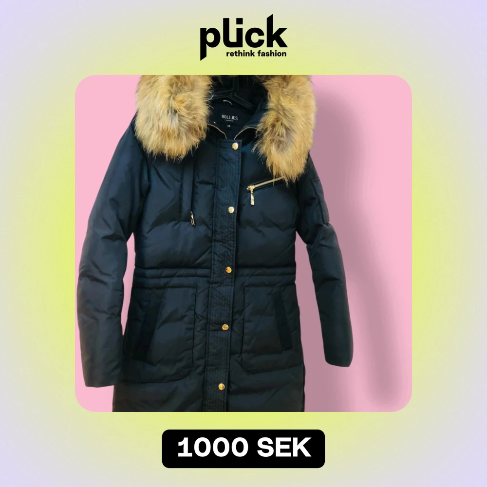 Säljer en snygg svart dunjacka från Hollies i storlek 34. Den har en fluffig äkta päls på huvan och guldiga dragkedjor och knappar. Perfekt för kalla vinterdagar! sparsamt använd eftersom den är lite för liten för mig, så den är i nästan ny skick. Ordinarie pris är 4300 kr. Jackan finns i Uppsala men kan också fraktas spårpart