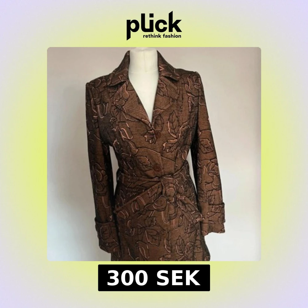 Snygg brun kappa från Mimar Collection med blommigt mönster i svart och beige. Kappan har klassisk krage, knäppning framtill och bälte i midjan. Långärmad och fodrad för extra komfort. Perfekt för dig som vill sticka ut med en unik och trendig look.