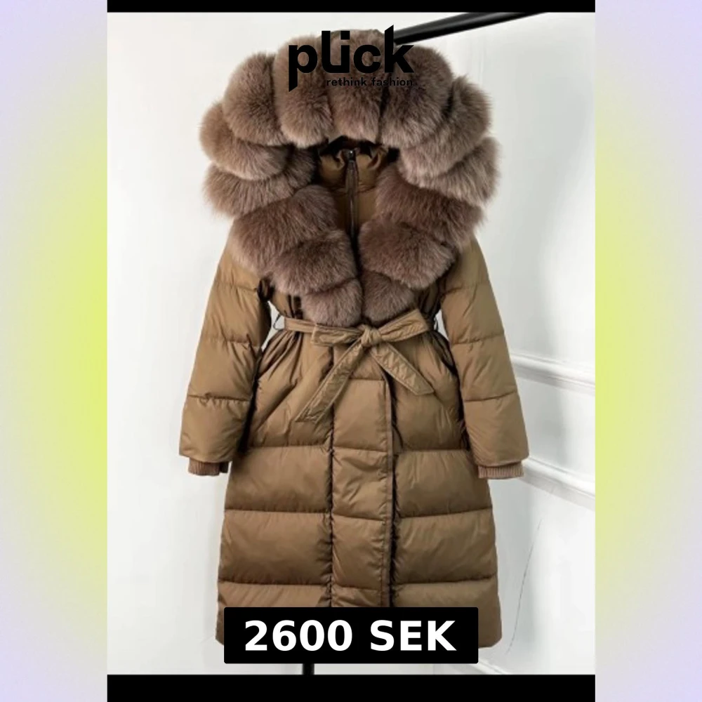 Säljer en brun lång pufferjacka med stor fluffig päls runt huvan och midjebälte. Jackan har långa ärmar och quiltad design, perfekt för kalla dagar. Snygg och varm med lyxig känsla, passar dig som vill sticka ut i vinter.