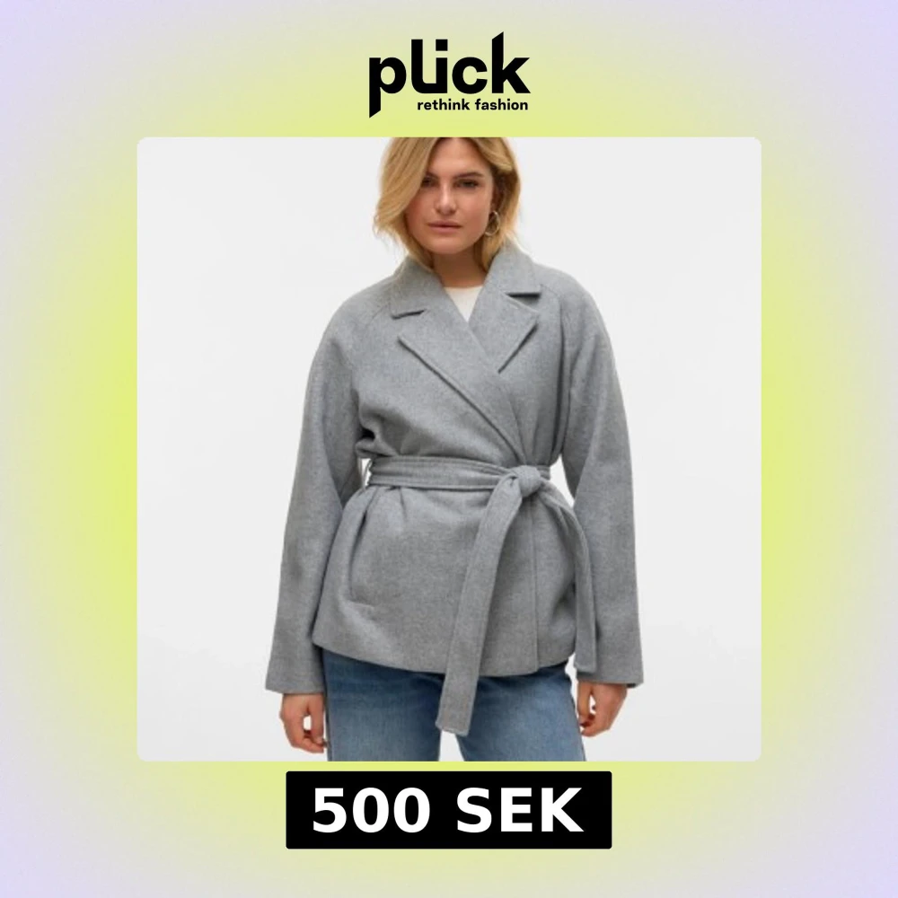Snygg grå jacka i omlottmodell med bälte i midjan och klassisk krage. Jackan har lång ärm och en stilren, rak passform. Perfekt för dig som gillar en clean och enkel look.