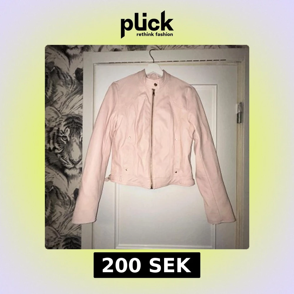 Ljusrosa skinnjacka med dragkedja