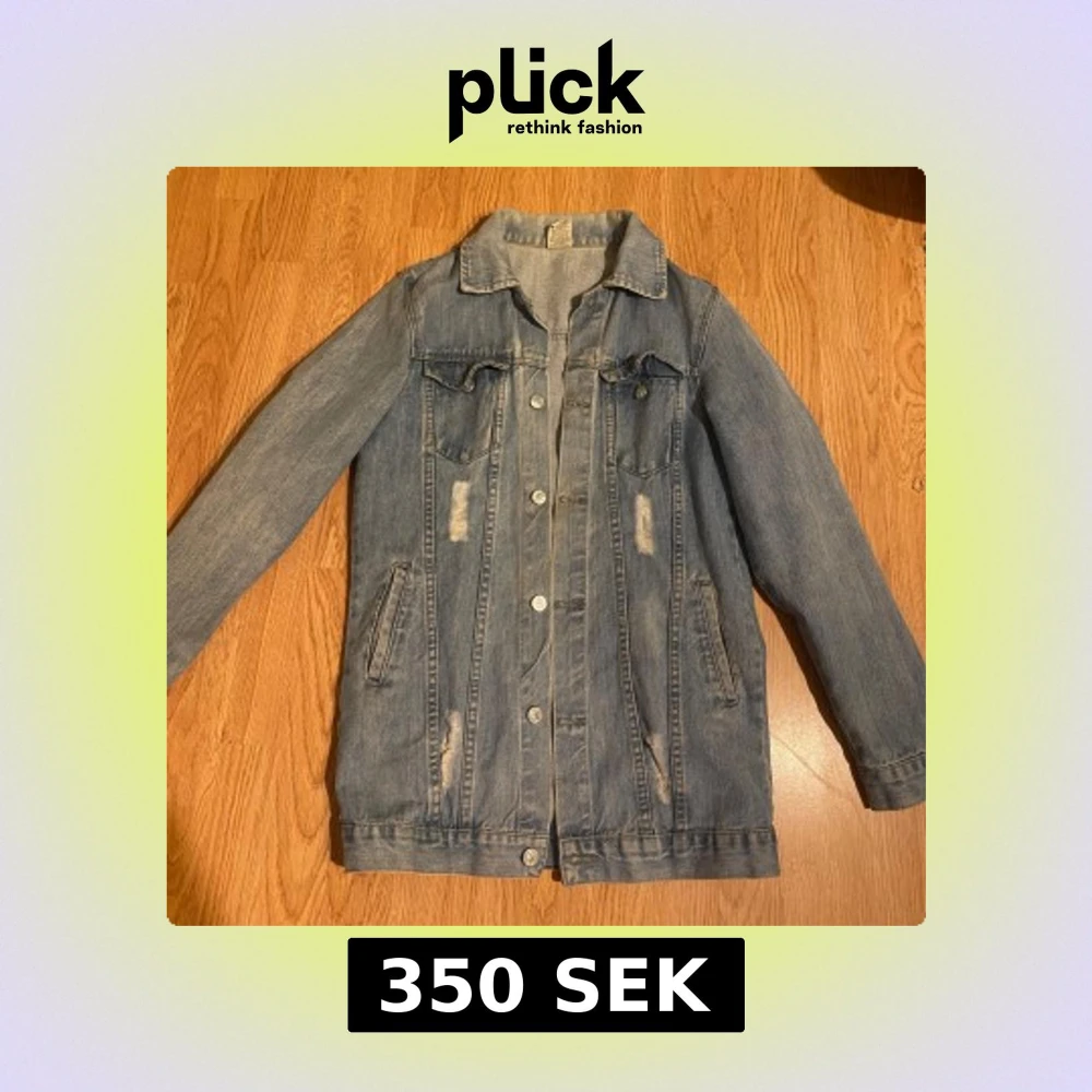 Snygg blå jeansjacka med klassisk design och slitna detaljer. Jackan har långa ärmar och knappar framtill samt två bröstfickor med lock. Perfekt för vår,höst och sommar.