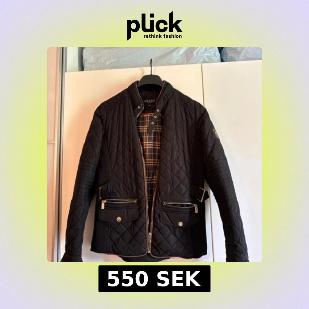 Snygg svart quiltad jacka från Hollies med dragkedja och knappar. Perfekt för höst och vår. Jackan har inga slitage.
