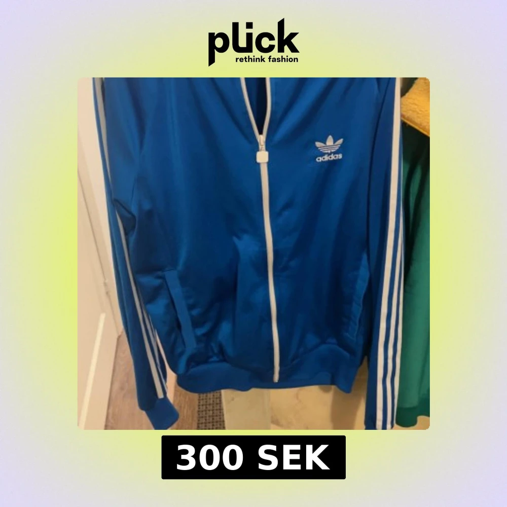 Klassisk blå Adidas vindjacka med vita dragkedjor och de ikoniska tre ränderna längs ärmarna. Jackan har ståkrage, två fickor och Adidas logga broderad på bröstet. Perfekt för en sportig och stilren look. Använt 3 gånger fortfarande i jätte bra skick 8/10 .