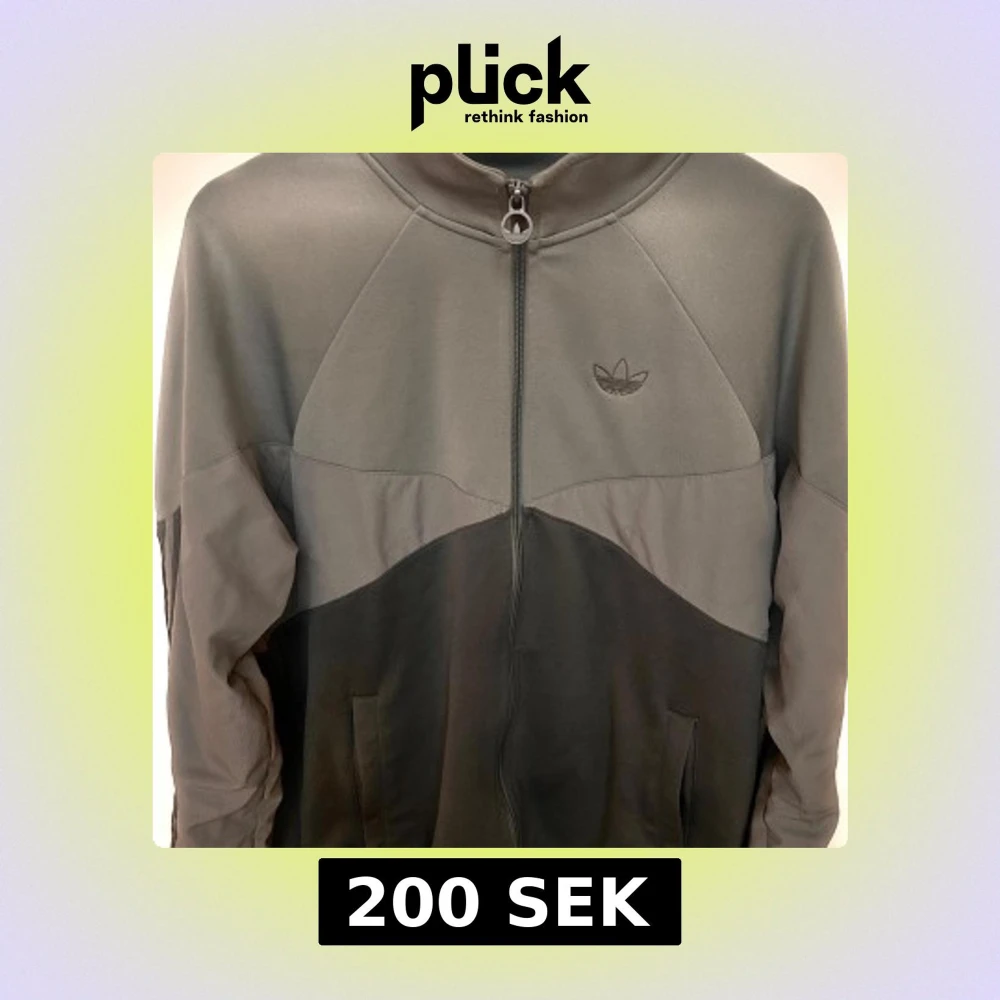 Snygg grå track jacket från Adidas med diskret logga på bröstet och hel dragkedja framtill. Jackan har hög krage, två fickor och coolt färgblocksmönster i olika grå nyanser. Perfekt för en sportig och avslappnad stil.