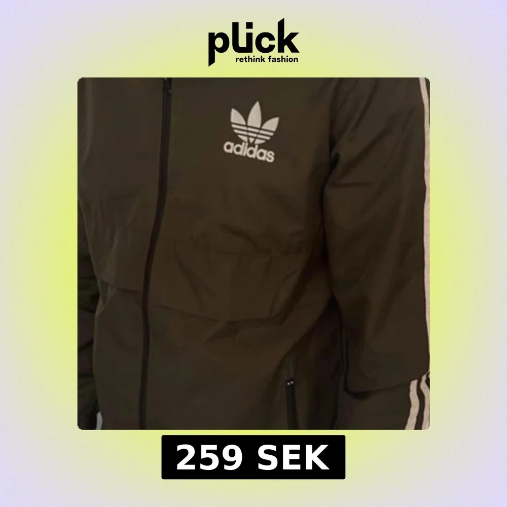Svart vindjacka från Adidas med klassiska vita ränder på ärmarna och huvan. Jackan har dragkedja framtill, Adidas-logga på bröstet och praktiska fickor. Perfekt för dig som gillar sportig och clean stil.
