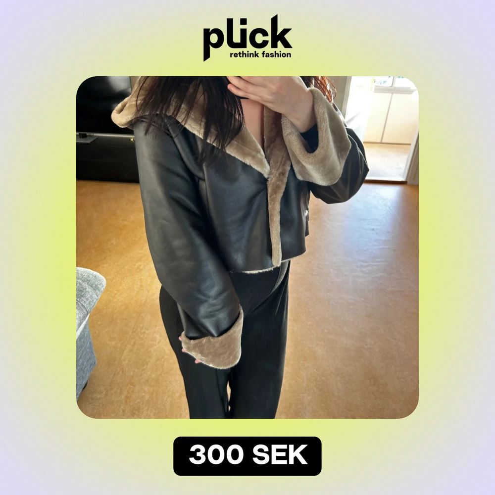 Säljer en snygg svart jacka med brun fuskpäls. Den är croppad och har en oversized passform med långa ärmar. Perfekt för höst och vår när du vill vara både varm och stilren. Jackan har en knapp framtill och är supermjuk inuti. Jackan ser väldigt ny ut, har inte använt den utomhus sen jag köpt den.
