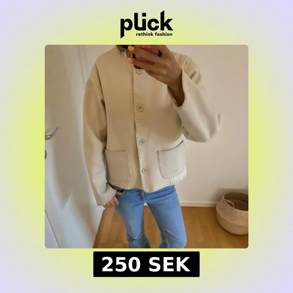 Stilren beige jacka med stora knappar framtill och två fickor. Den har snygga broderade detaljer längst kanterna❤️🔥