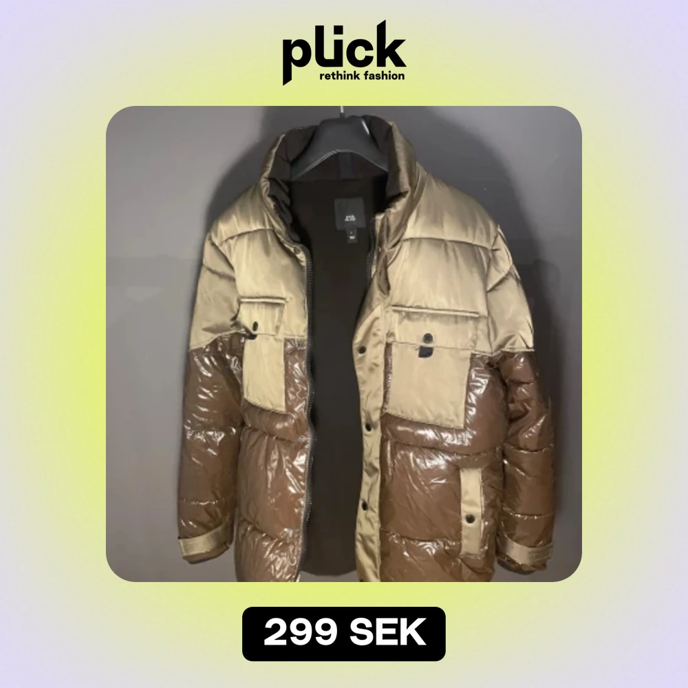 Säljer en snygg pufferjacka från River Island i grön och brun färg. Jackan har en glansig finish och är perfekt för kyliga dagar. Den har långa ärmar och praktiska fickor framtill. Stängs med dragkedja och knappar för extra värme. Perfekt för höst och vinter!
