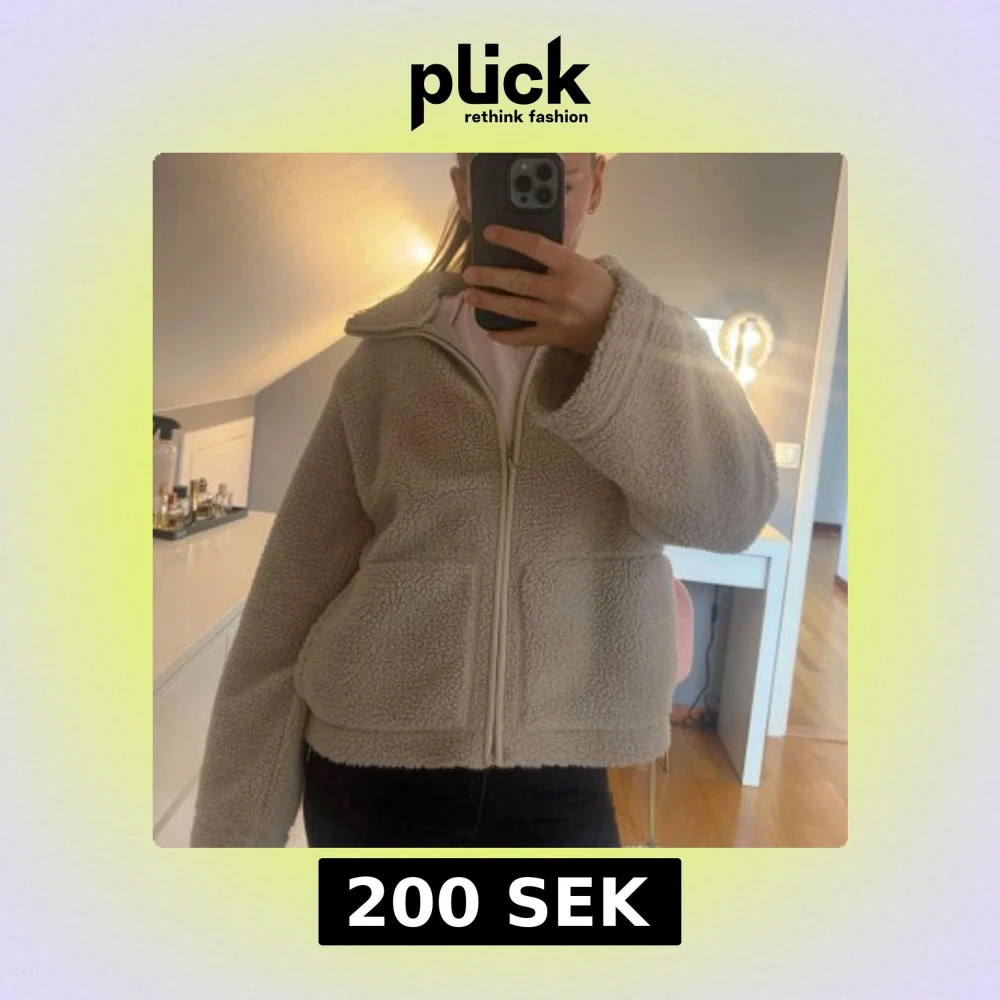 Mysig beige teddyjacka perfekt nu till hösten!Jackan har en rak och loose passform, långärmade ärmar och stängs med dragkedja. Använt den en höst/vinter men fortfarande i fint skick!