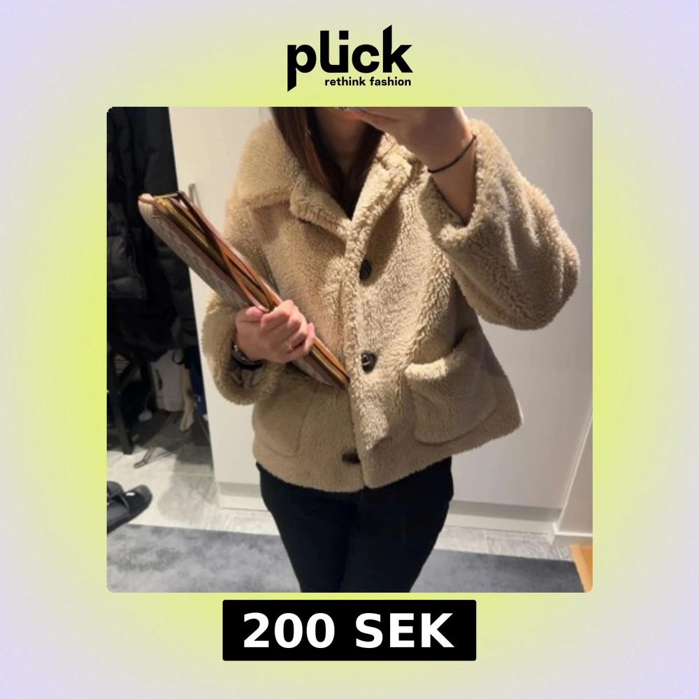 Mysig beige teddyjacka med stora knappar framtill. Jackan har en avslappnad passform och två stora fickor. Perfekt för kyliga dagar.