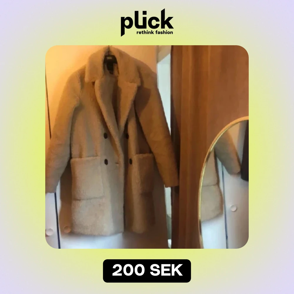 Beige teddyjacka med knappar - Mysig beige teddyjacka med klassisk krage och stora bruna knappar framtill. Jackan har två fickor på sidorna och är tillverkad i fluffigt teddy-material som ger en chill och trendig look. Perfekt för lager-på-lager och passar till de flesta outfits. Nopprigt/använt skick i tyget på vissa ställen, se sista bilden. Utöver det bra skick.