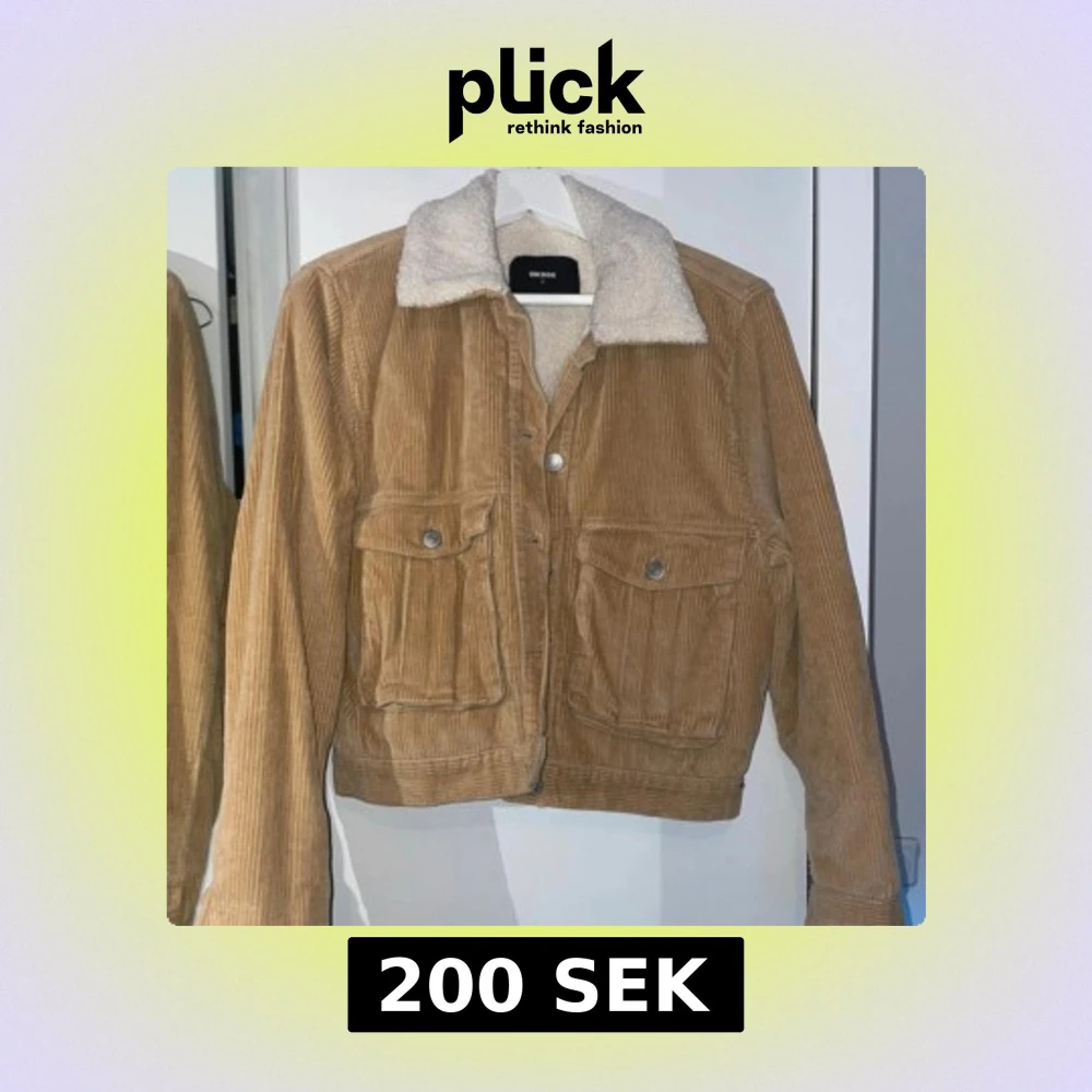 Säljer en snygg beige manchesterjacka från Bik Bok med mjukt teddyfoder i kragen. Jackan har knappar framtill och två fickor med knappstängning. Använd fåtal gånger