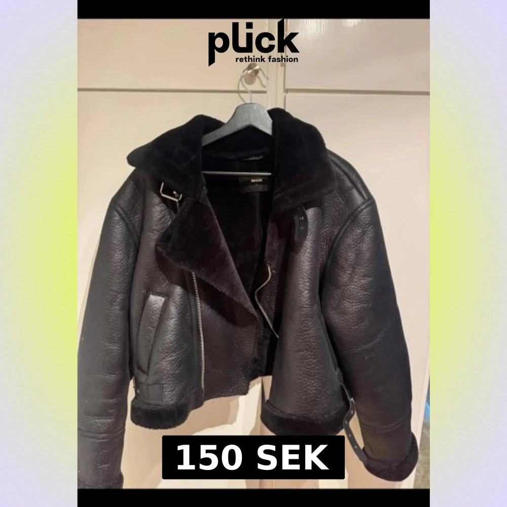 Säljer en svart skinnjacka från Bik Bok med päls . Storlek L