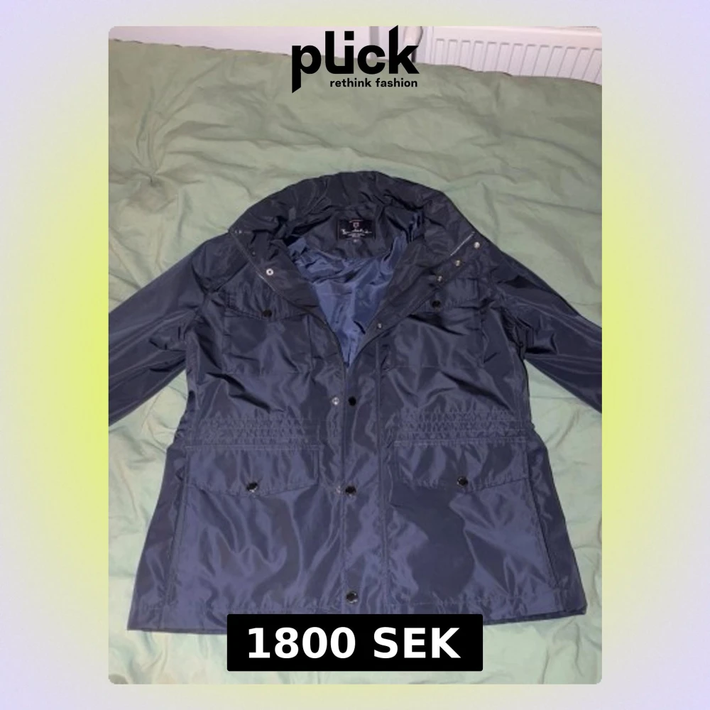 Snygg mörkblå vindjacka från Bondelid med huva och flera praktiska fickor framtill. Jackan har tryckknappar och dragkedja, samt en lätt glansig finish. Perfekt för blåsiga dagar och enkel att matcha med olika outfits. Kvitto finns med har använt jackan 1 gång pris går att dissekutera vid snabb affär