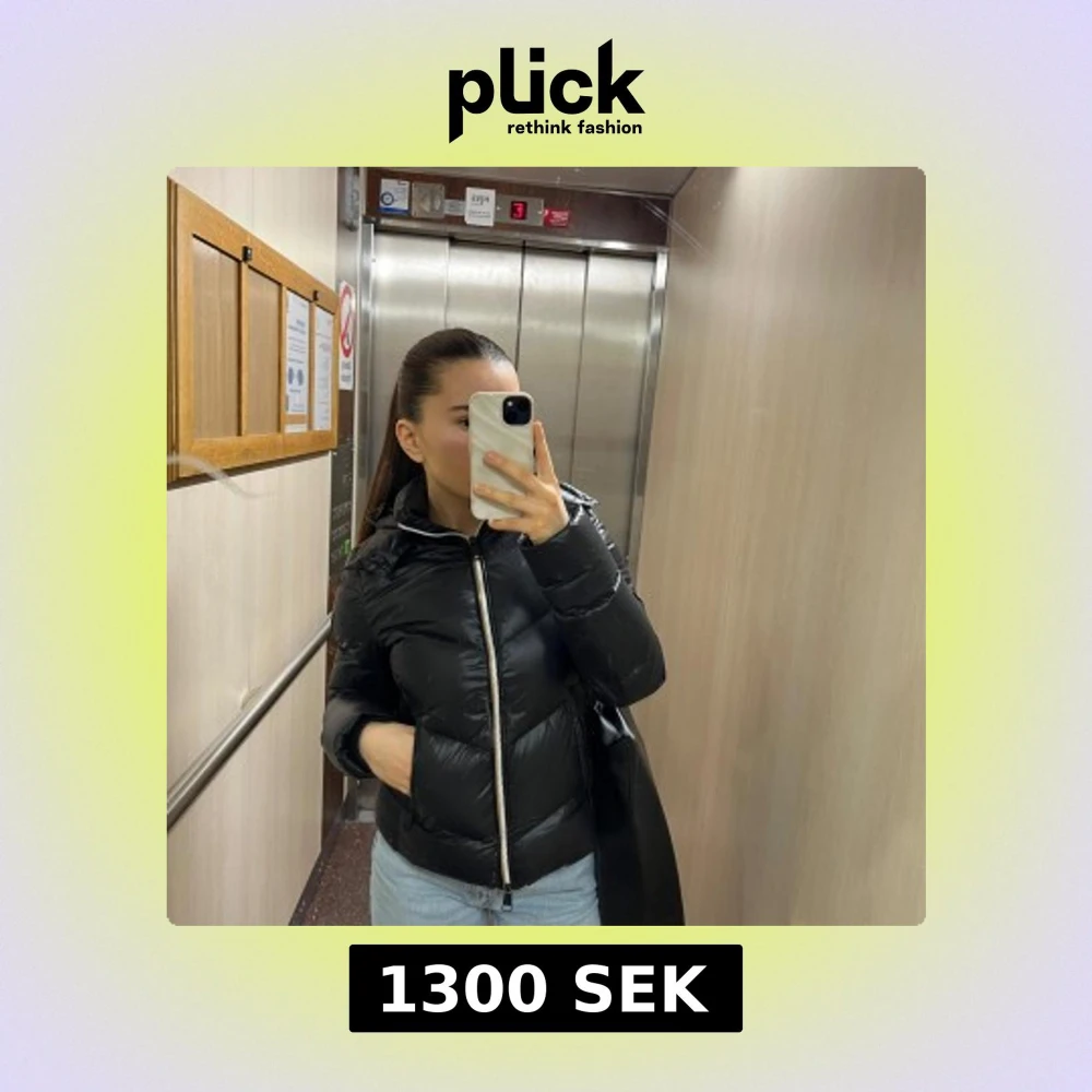 Snygg svart dunjacka köpt från BOSS med glansig finish och vadderad design. Jackan har huva, dragkedja framtill och praktiska fickor med dragkedja. Perfekt till vintern. Knappt använd pga den inte passar mig längre. 💓
