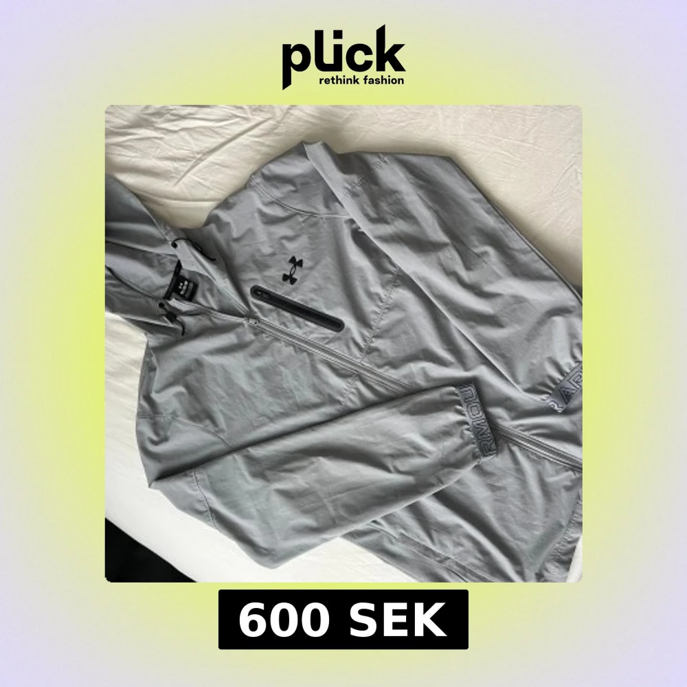 Snygg grå vindjacka från Under Armour med huva och dragkedja framtill. Jackan har en bröstficka med dragkedja och diskret logga på bröstet. Perfekt för dig som gillar sportig stil och vill ha något lätt och smidigt.
