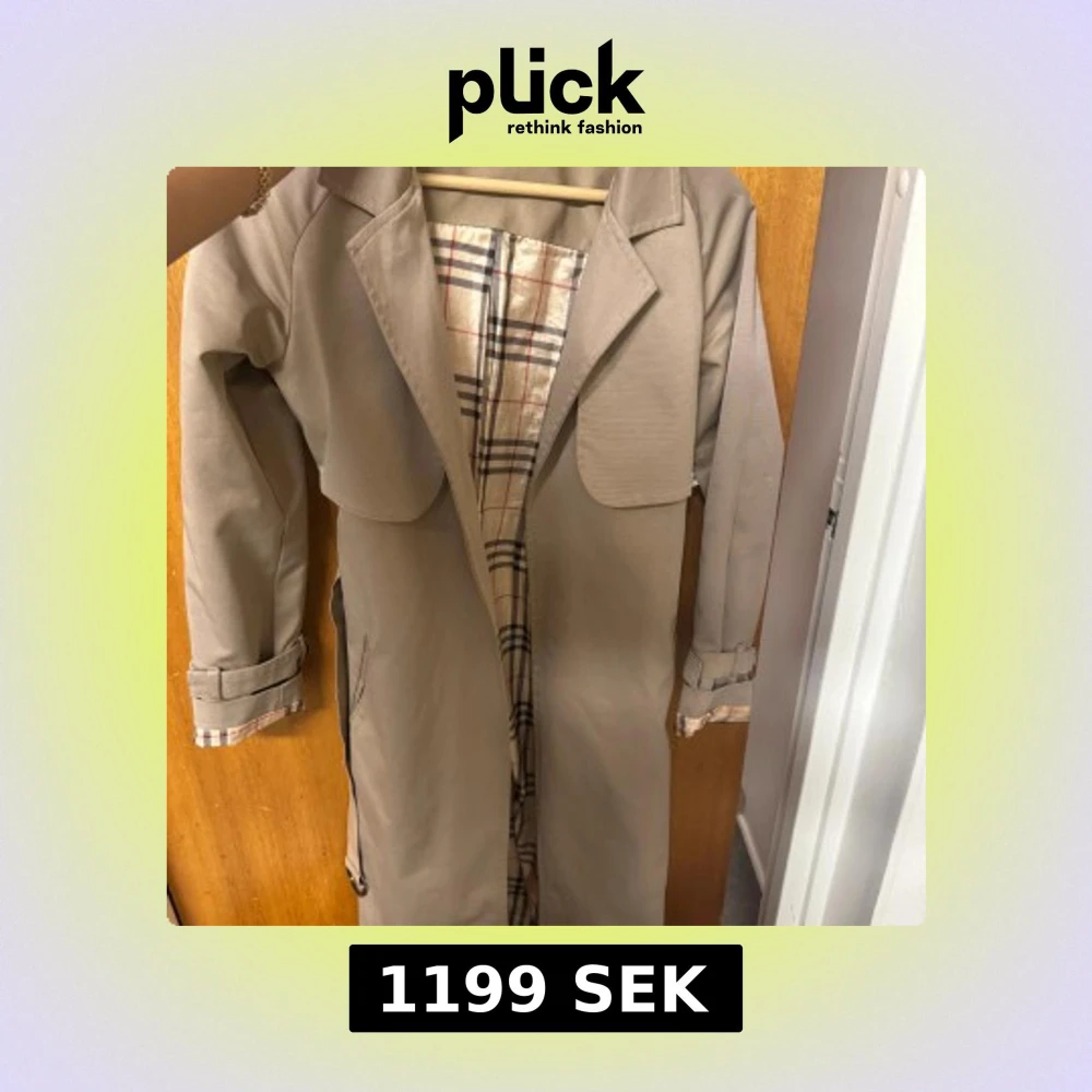 Snygg beige trenchcoat från Burberry med klassiskt rutigt foder i beige.