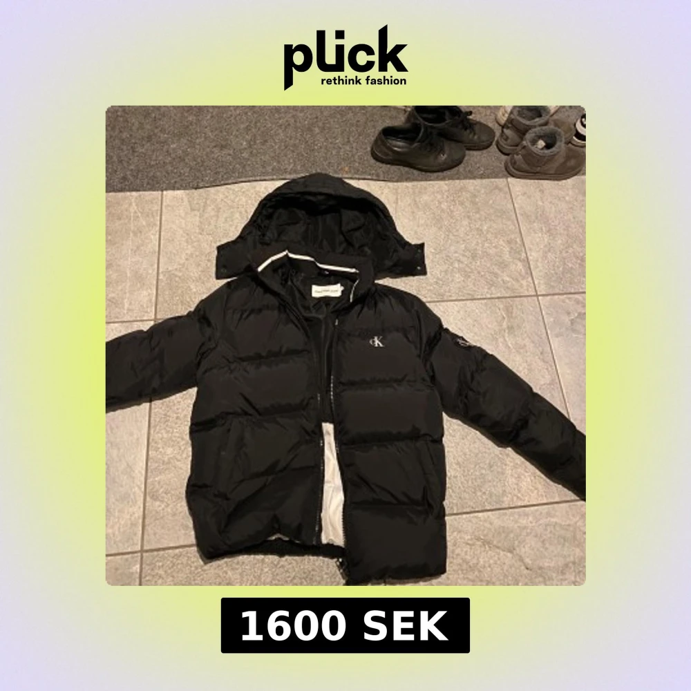 Säljer en snygg svart pufferjacka från Calvin Klein strl M med huva och dragkedja. Jackan är använd ca 10 gånger. Perfekt för kyligare dagar. Pris kan diskuteras vid snabb affär!