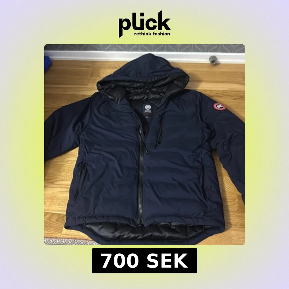 Snygg mörkblå dunjacka från Canada Goose med huva och klassisk logga på ärmen. Jackan har dragkedja framtill, flera fickor med dragkedja och quiltad insida. Perfekt för kalla dagar och riktigt skön passform.