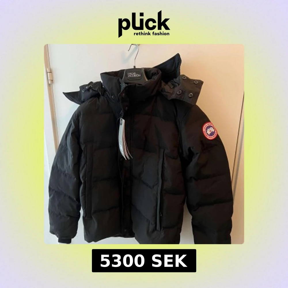 Säljer en svart dunjacka från Canada Goose med klassisk patch på ärmen. Jackan har hög krage, avtagbar huva med snörning och dragkedja framtill. Fylld med dun för extra värme och har två stora fickor framtill. Perfekt för kalla vinterdagar.