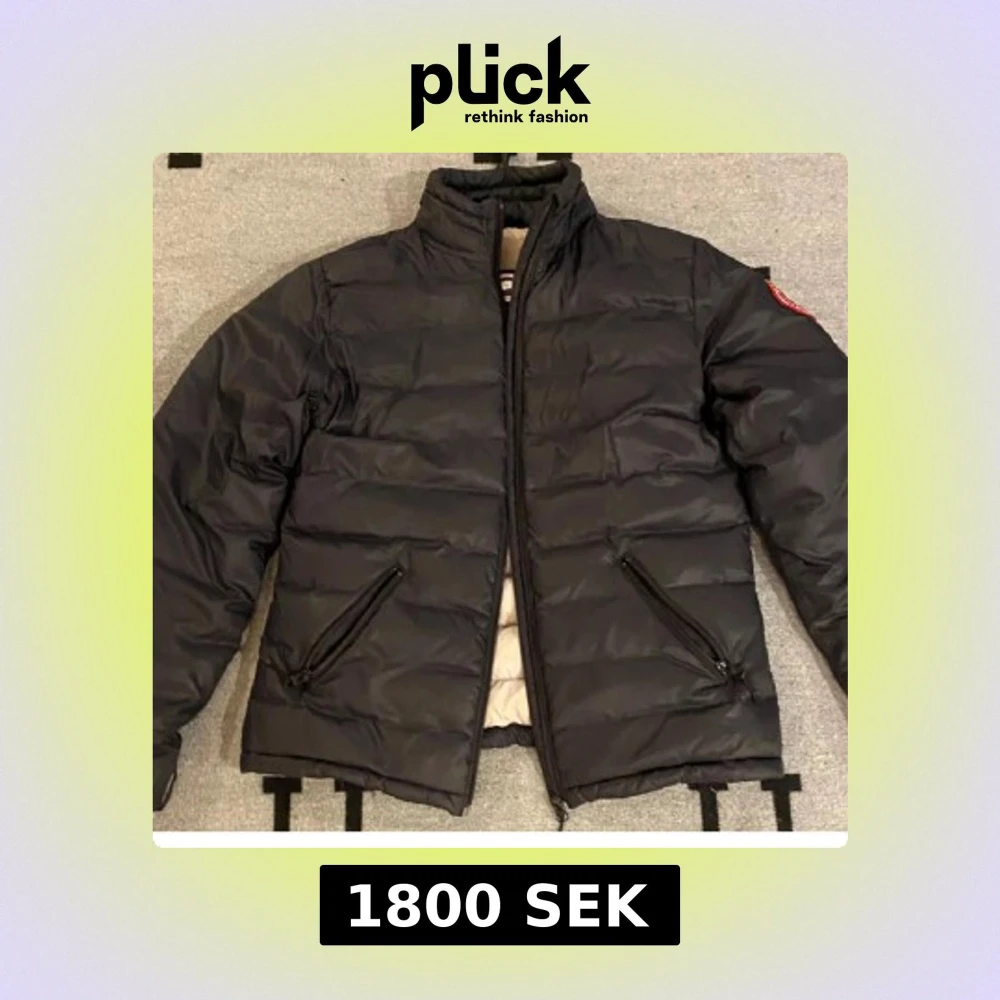 Säljer en svart dunjacka från Canada G00se med klassisk röd logotyp på ärmen. Jackan har quiltad design, hög krage och två snedställda fickor med dragkedja. Insidan är ljusbeige och jackan har en loose passform, perfekt för kalla dagar. Hör gärna av er vid frågor eller prisförslag😁