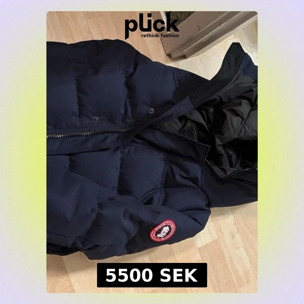 Säljer en mörkblå Canada Goose dunjacka med huva och klassisk logga på ärmen. Jackan har dragkedja framtill och är riktigt puffig och varm, perfekt för kalla dagar. Insidan har meshfickor och detaljer i svart. Grym jacka för vintern!