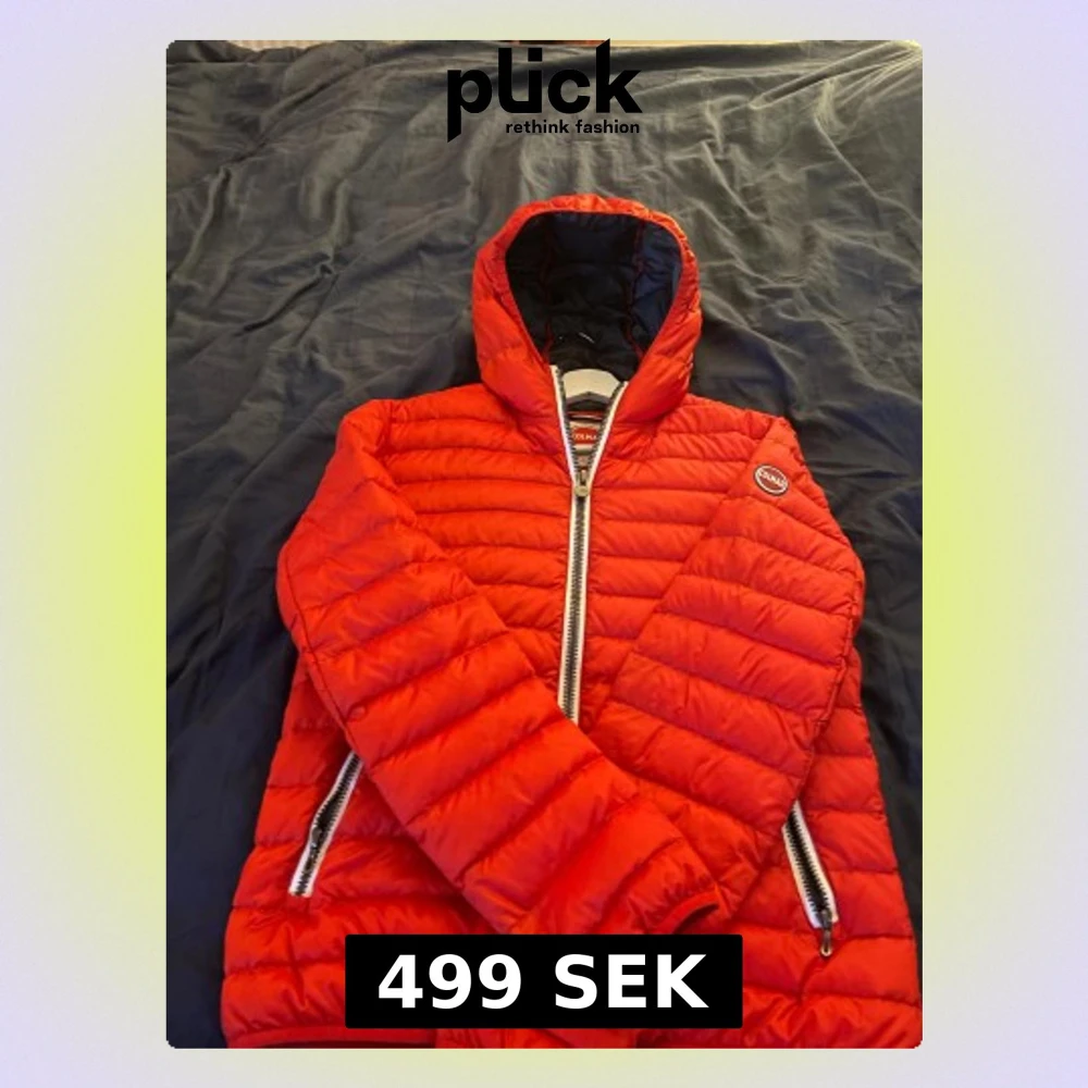 OBS: Den har ett blått märke på ärmen men man märker inte av den. Säljer en röd pufferjacka från Colmar med huva och två sidofickor med dragkedja. Jackan har ett quiltat mönster och en snygg, sportig look. Perfekt för dig som gillar färg och vill sticka ut lite extra. Passar dig som vill ha en varm jacka med cool design.